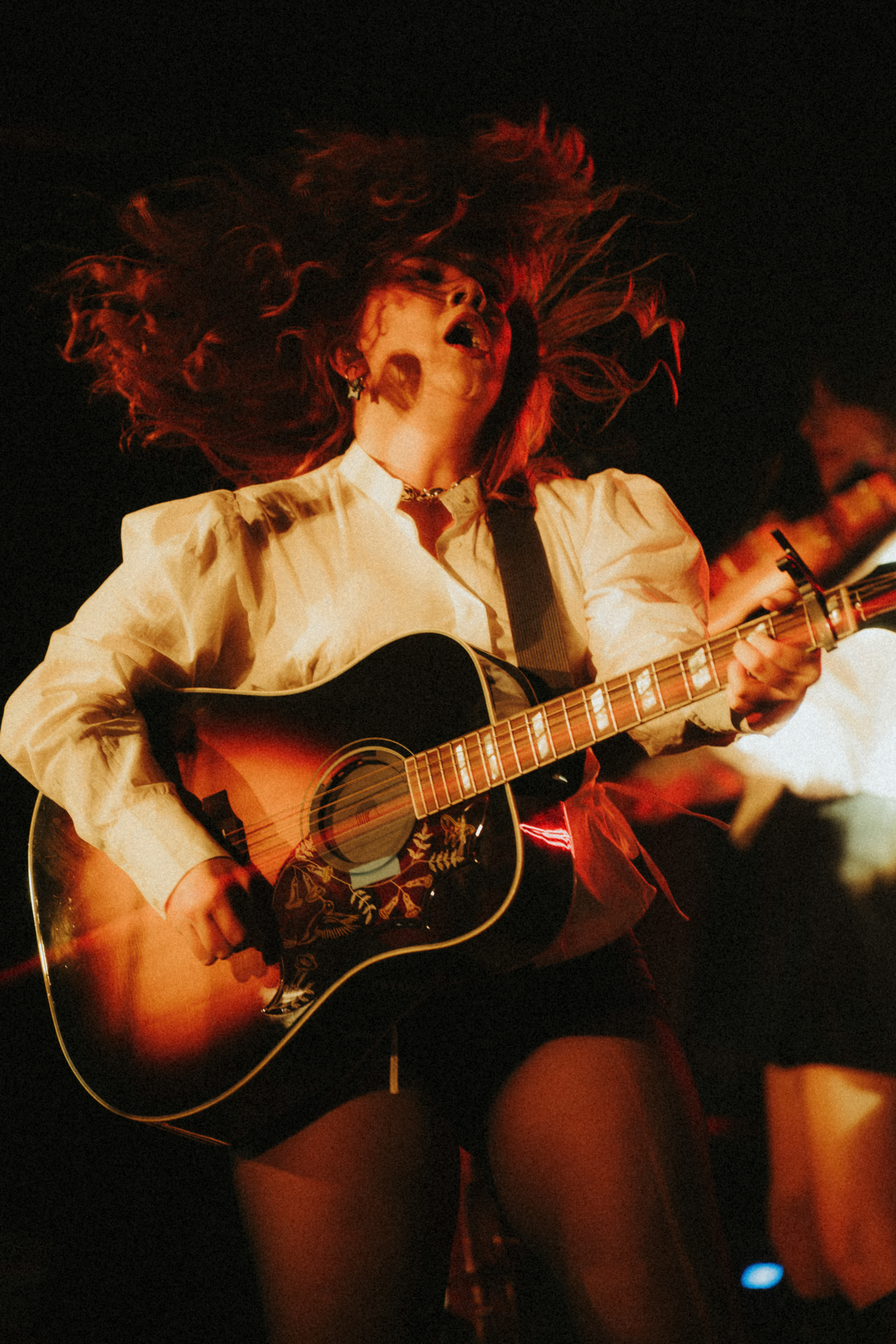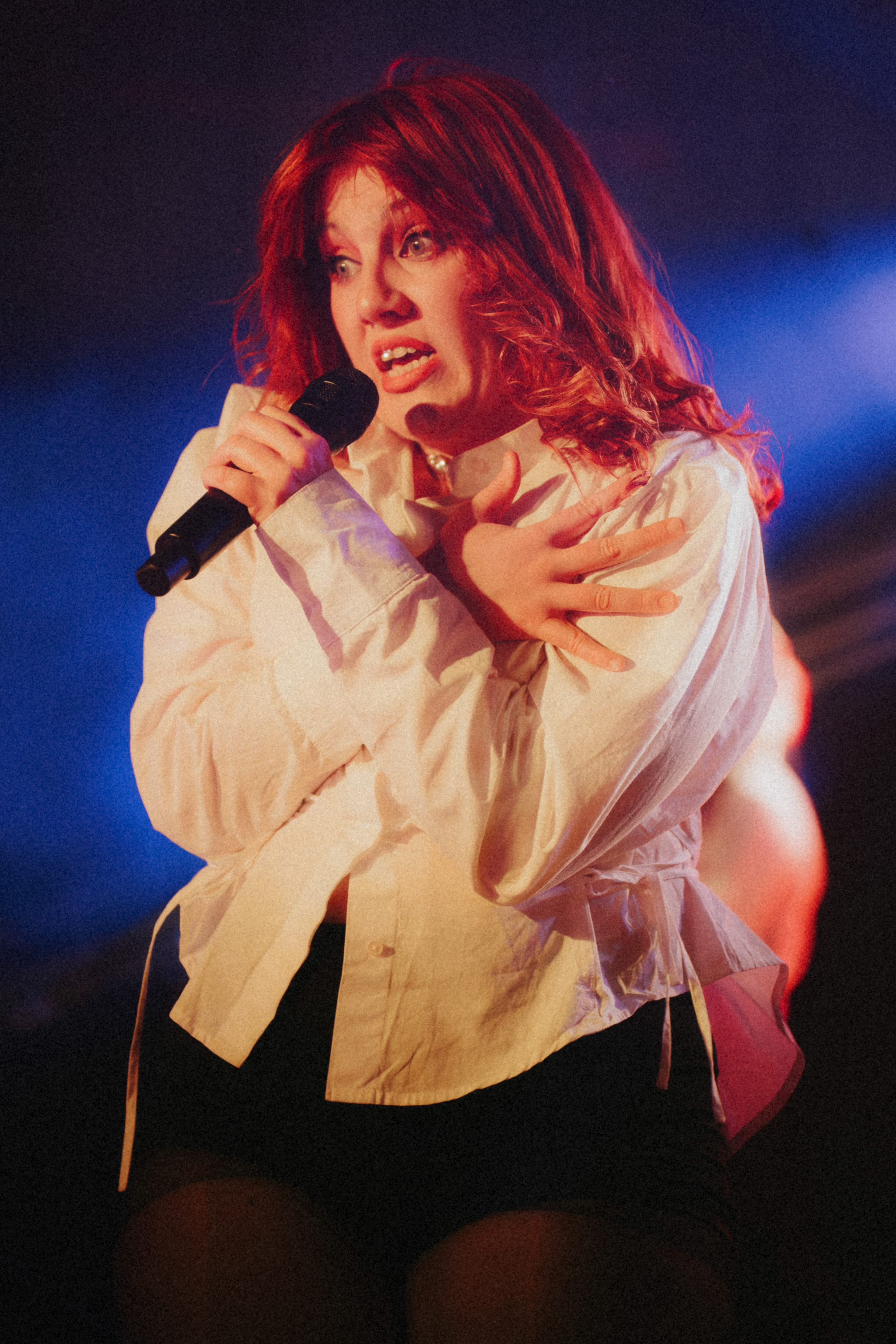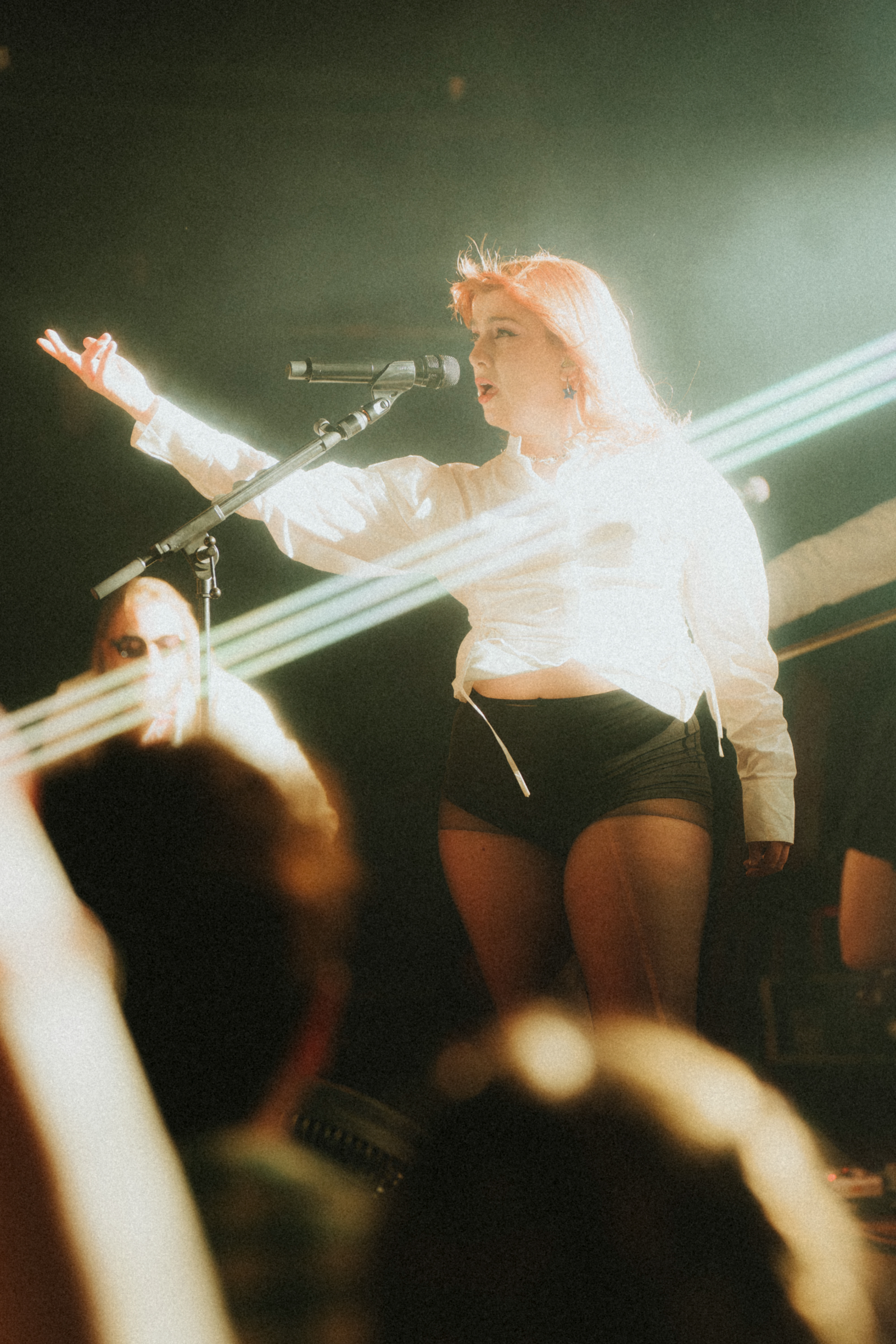 From my spot up front at stage left, I had to stay sharp just to keep her in frame because she never stopped moving. A kind girl in front of me let me slip ahead a couple of times with my camera, which gave me just enough space to catch my allotted first 3 songs in full force. Even in that short stretch, the energy swung from playful chaos to raw emotion, and I managed to capture a few frames where the whole room seemed to hold its breath.