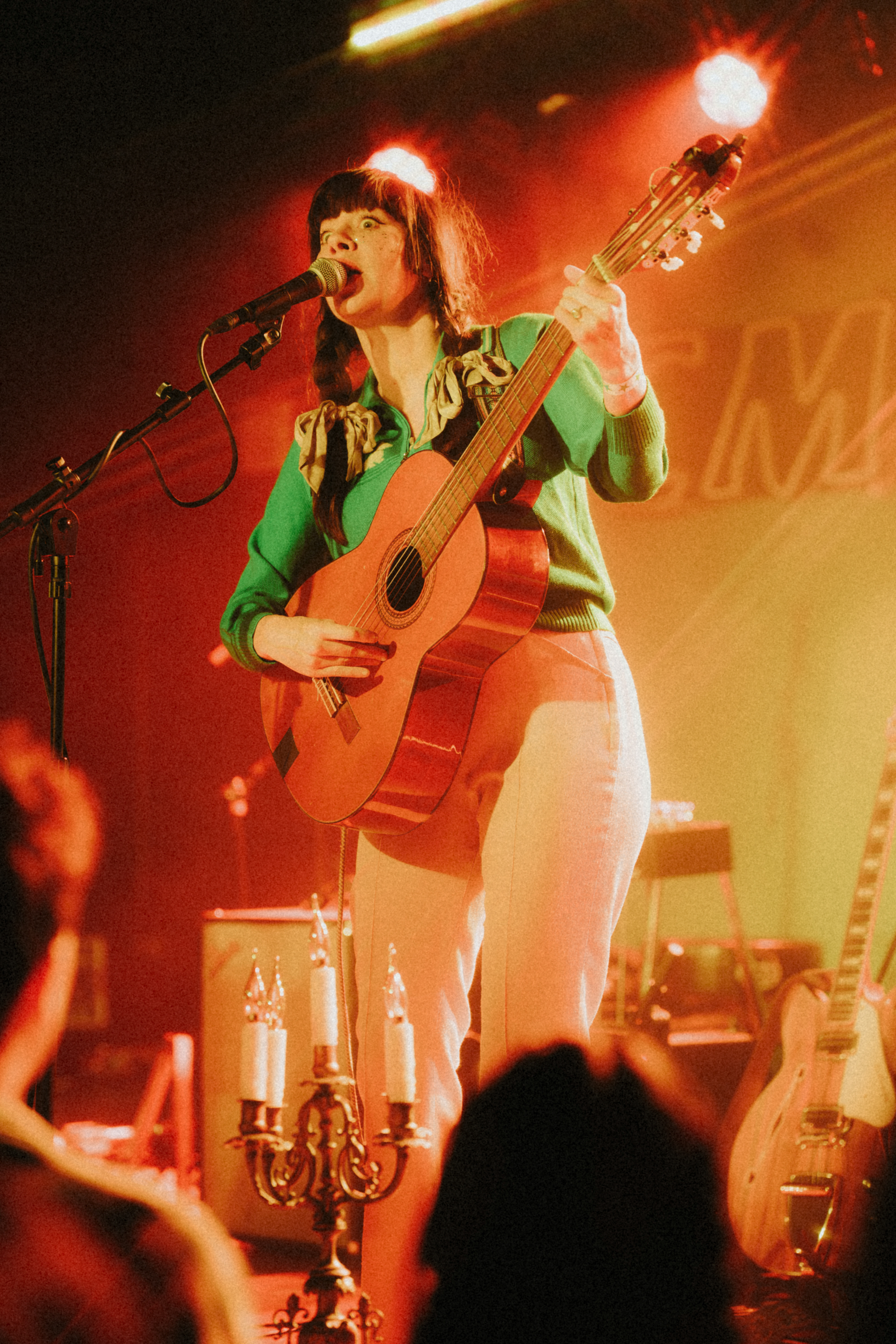 Before CMAT’s grand entrance, Tele Novella opened the night with a set that felt like stepping into a faded storybook. Their sound is equal parts 60s pop, spaghetti western twang, and dreamlike lullaby, and it immediately set a mood that was both gentle and strange. Singer Natalie Ribbons delivered each line with a lilting, almost theatrical presence, while Jason Chronis’ auxiliary instrumentation anchored the songs with understated elegance. It was the kind of performance that doesn’t shout for attention but quietly draws you in, leaving the room swaying and smiling. Their quirky, off-kilter style turned out to be the perfect counterpoint to the high-voltage spectacle that CMAT would unleash next.