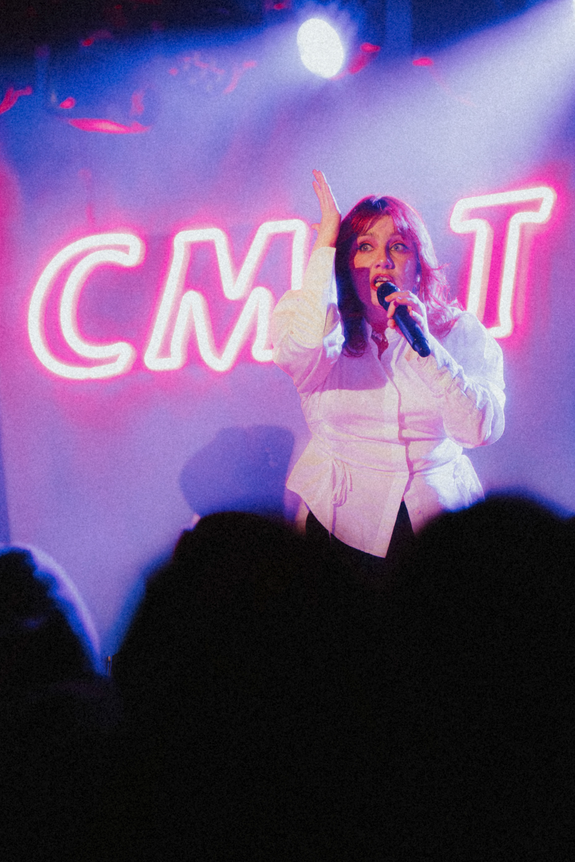 Basement East was buzzing on Sunday before CMAT even stepped onstage. “Before He Cheats”, Carrie Underwood’s scorned-lover anthem, had played twice over the house speakers, turning the audience into a stomping sing-along both times. Right around 9 PM, the room was pitched into darkness, signaling the beginning of something important. The band enters from stage left, but CMAT is nowhere to be seen. “I am a writer,” we hear from above. “Where are you?” cries an excited audience member. “I am a writer,” she says again. The band points to the back of the room and everyone turns on heels. By the time she appeared, weaving her way through the crowd before claiming center stage, the night already felt charged.